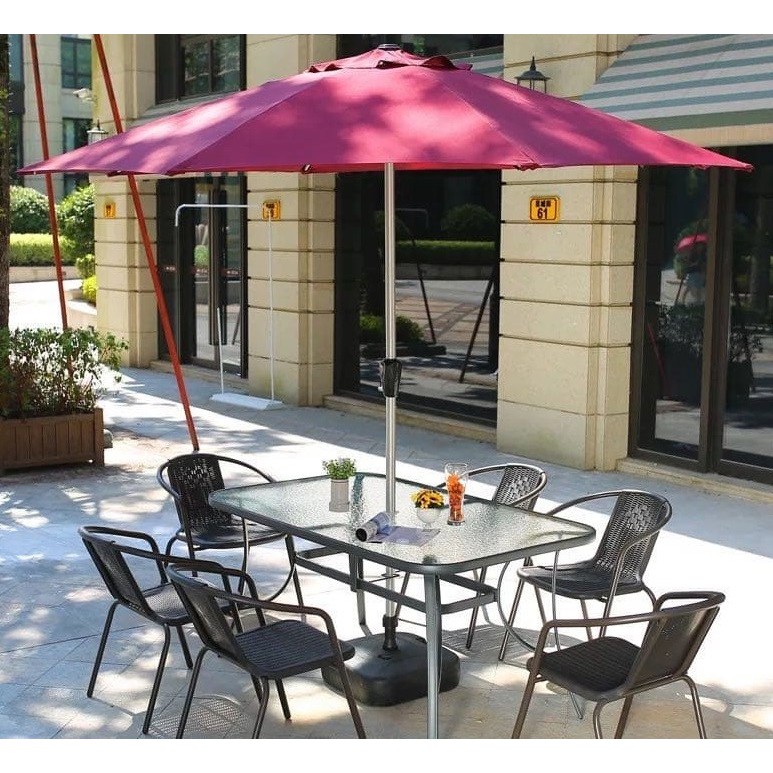 Patio umbrellas come in all shapes and sizes—round, square, rectangular, and more—so you'll want to consider what type of umbrella best suits your needs before you buy. Outdoor garden table patio restaurant cafe bar bistro furniture w/ umbrella hole. Sunshine, rain, wind, sand, snow, etc. This patio table set includes a table with a sturdy metal frame, as well as four folding chairs, and a portable umbrella. Below outdoor chairs use poor rattan material and exposure under outdoor weather for just a couple of outdoor patio furniture is made to withstand the elements.